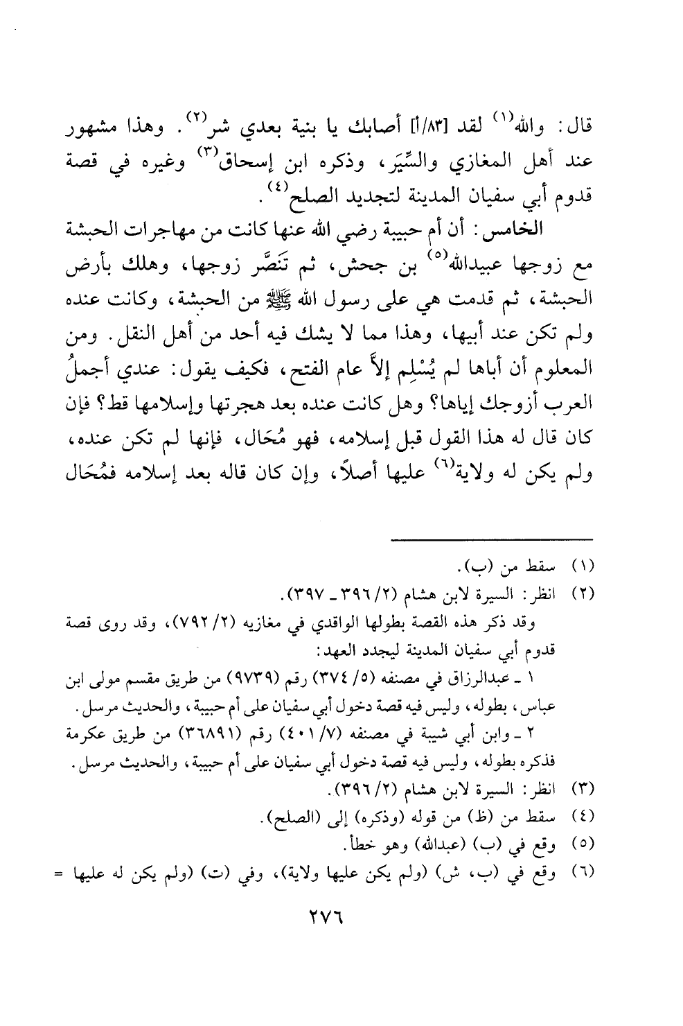 الخامس: ان ام حبيبة رضي الله عنها كانت من مهاجرات الحبشة