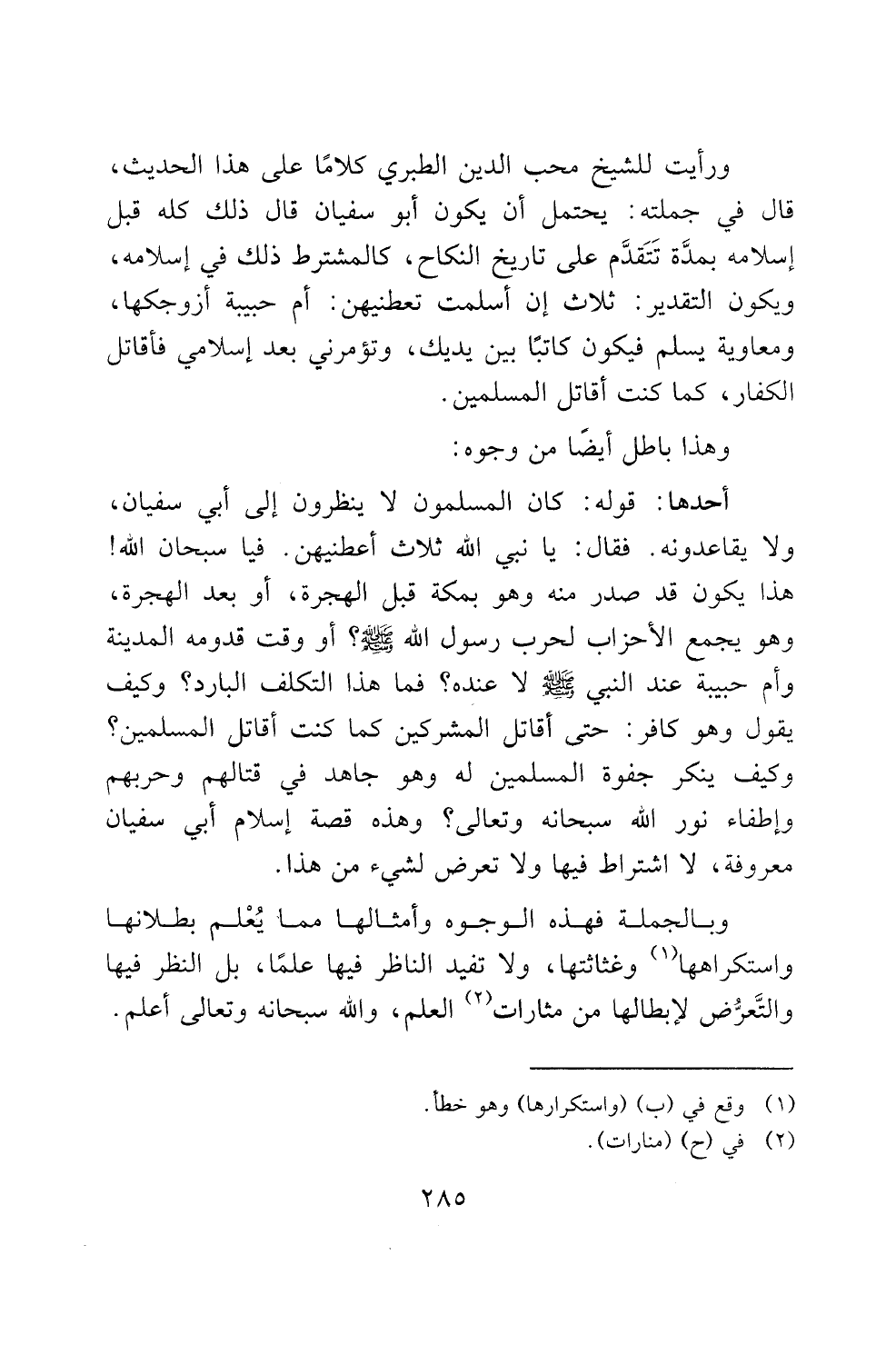 قال في جملته: يحتمل أن يكون أبو سفيان قال ذلك كله قبل