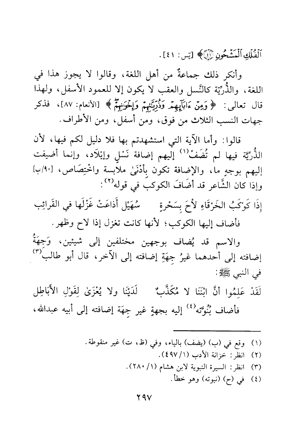 إليهم بوجه ما، والاضافة تكون بأدنى ملابسة واختصاهر، 1911 ب]