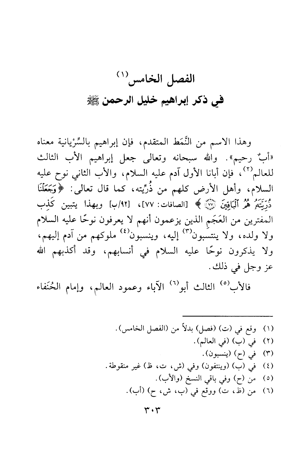 الفصل الخامس (1) في ذكر ابراهيم خليل الرحمن صلى الله عليه وسلم