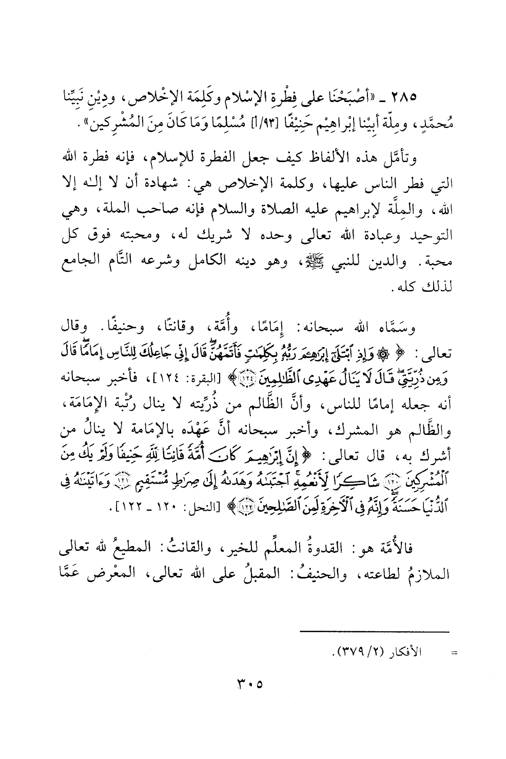 285 - "اصبحنا على فطرة الاسلام وكلمة الاخلاص، ودين نبينا