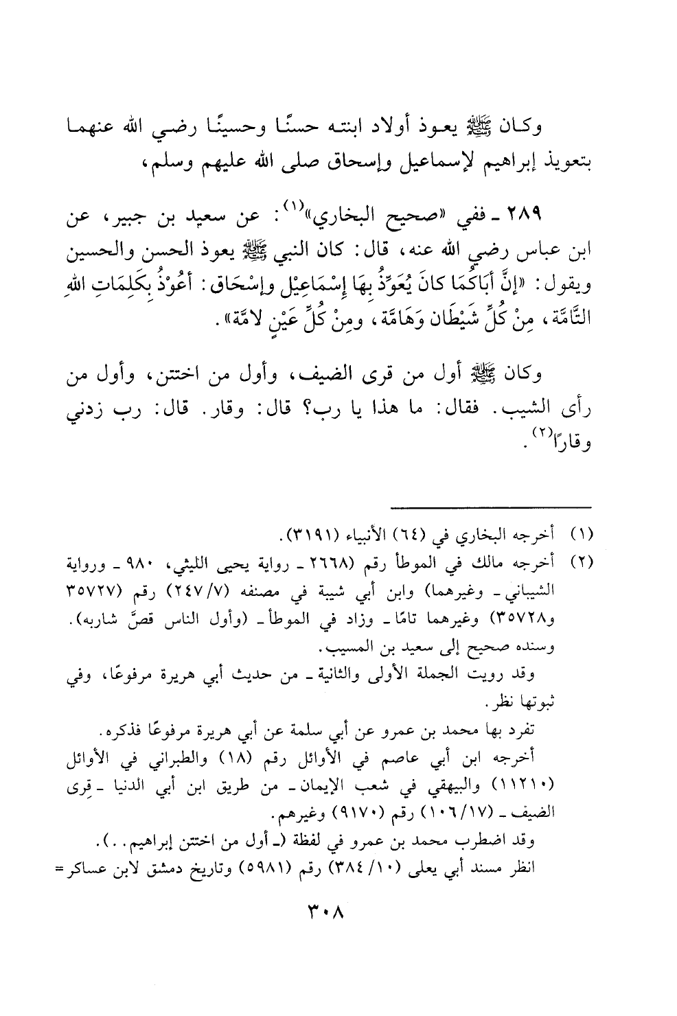 ويقول: "إن اباكما كان يعوذ بها إسماعيل واسحاق: اعوذ بكلمات الله