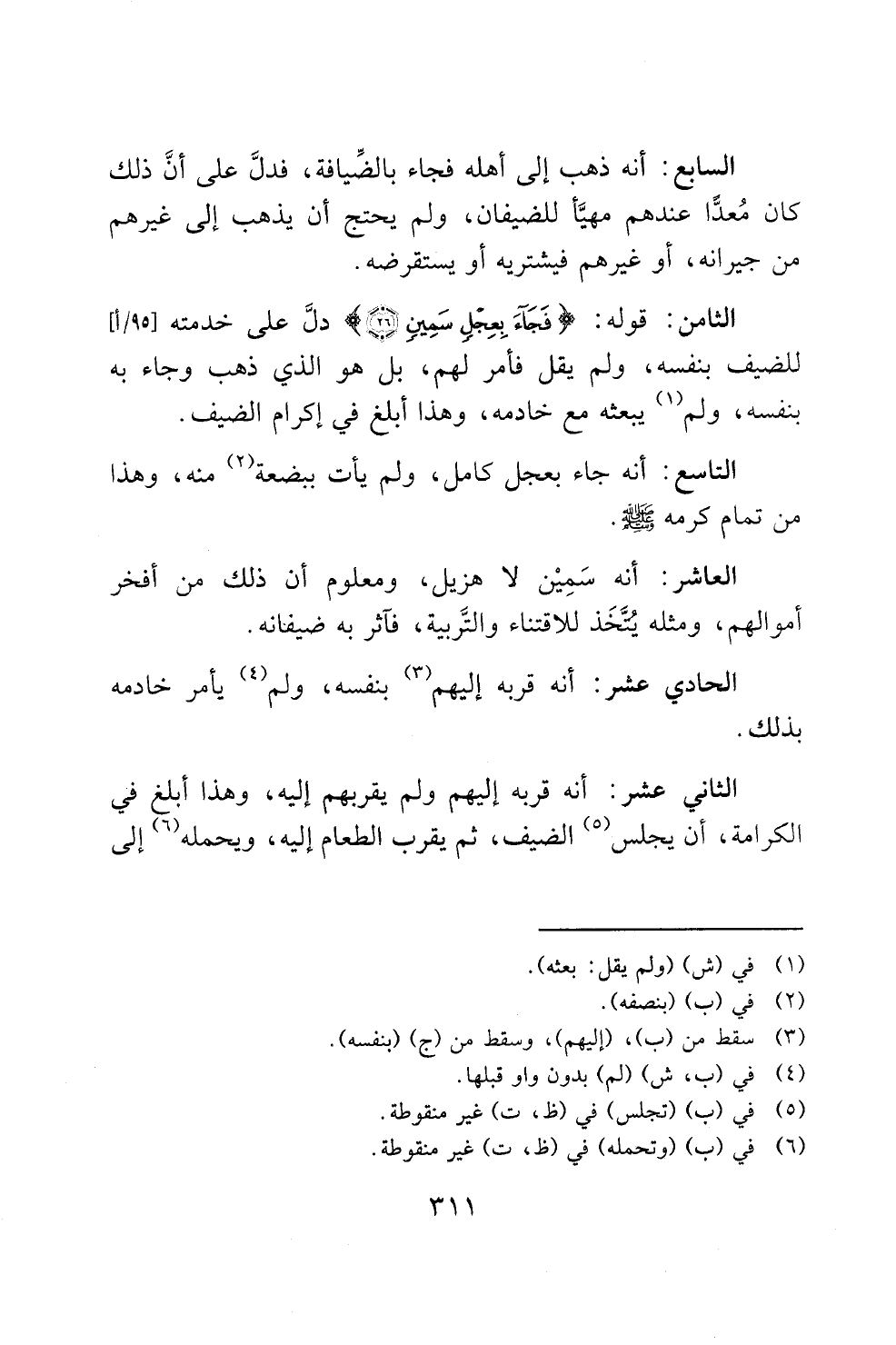 السابع: انه ذهب إلى أهله فجاء بالضيافة، فدل على أن ذلك