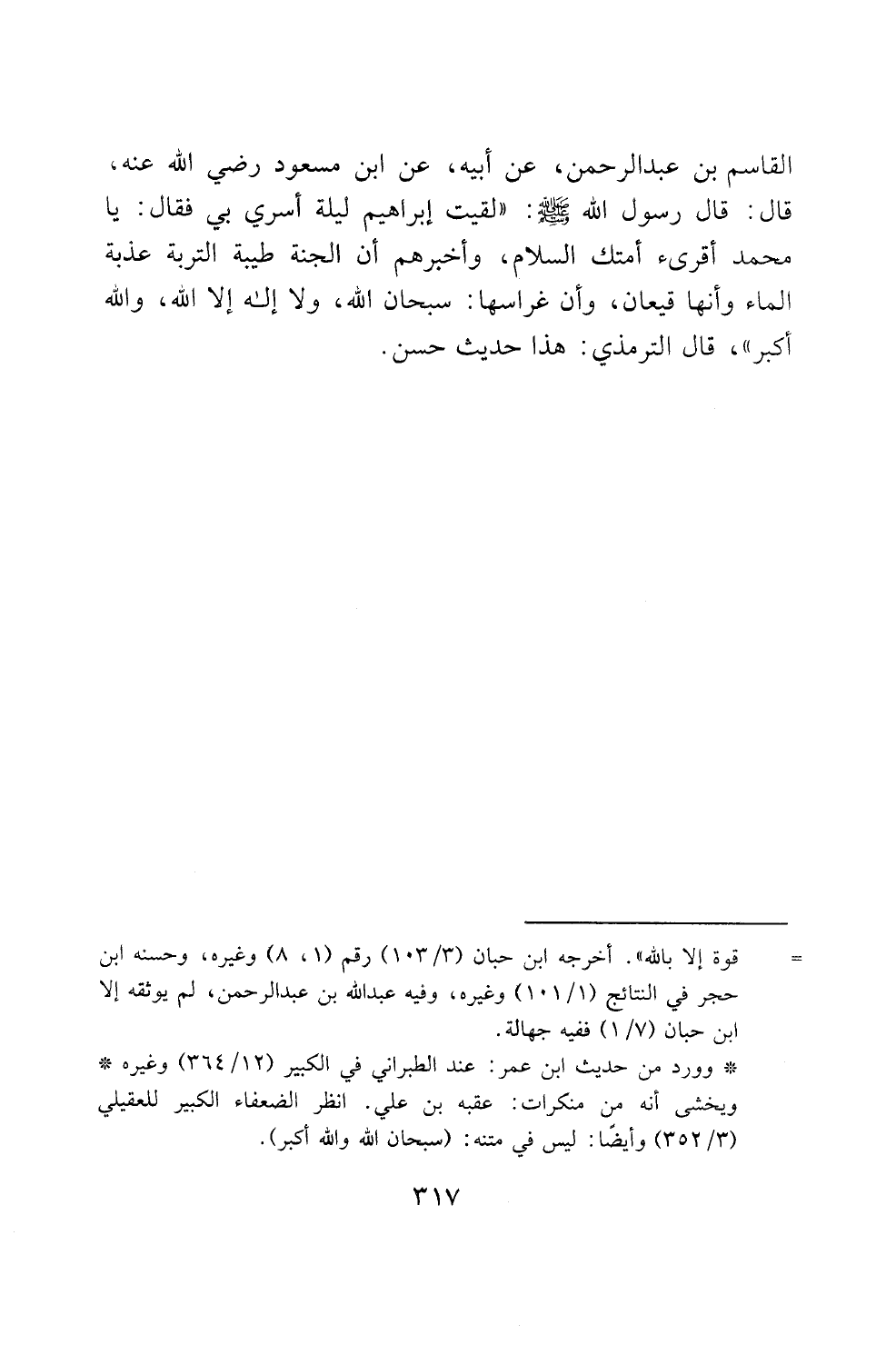 قوة إلا بالثه". اخرجه ابن حبان (103/ 3) رقم (1، 8) وغيره، وحسنه ابن
