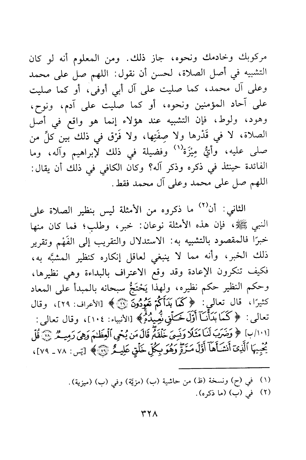 الثاني: أن (2) ما ذكروه من الامثلة ليس بنطير الصلاة على