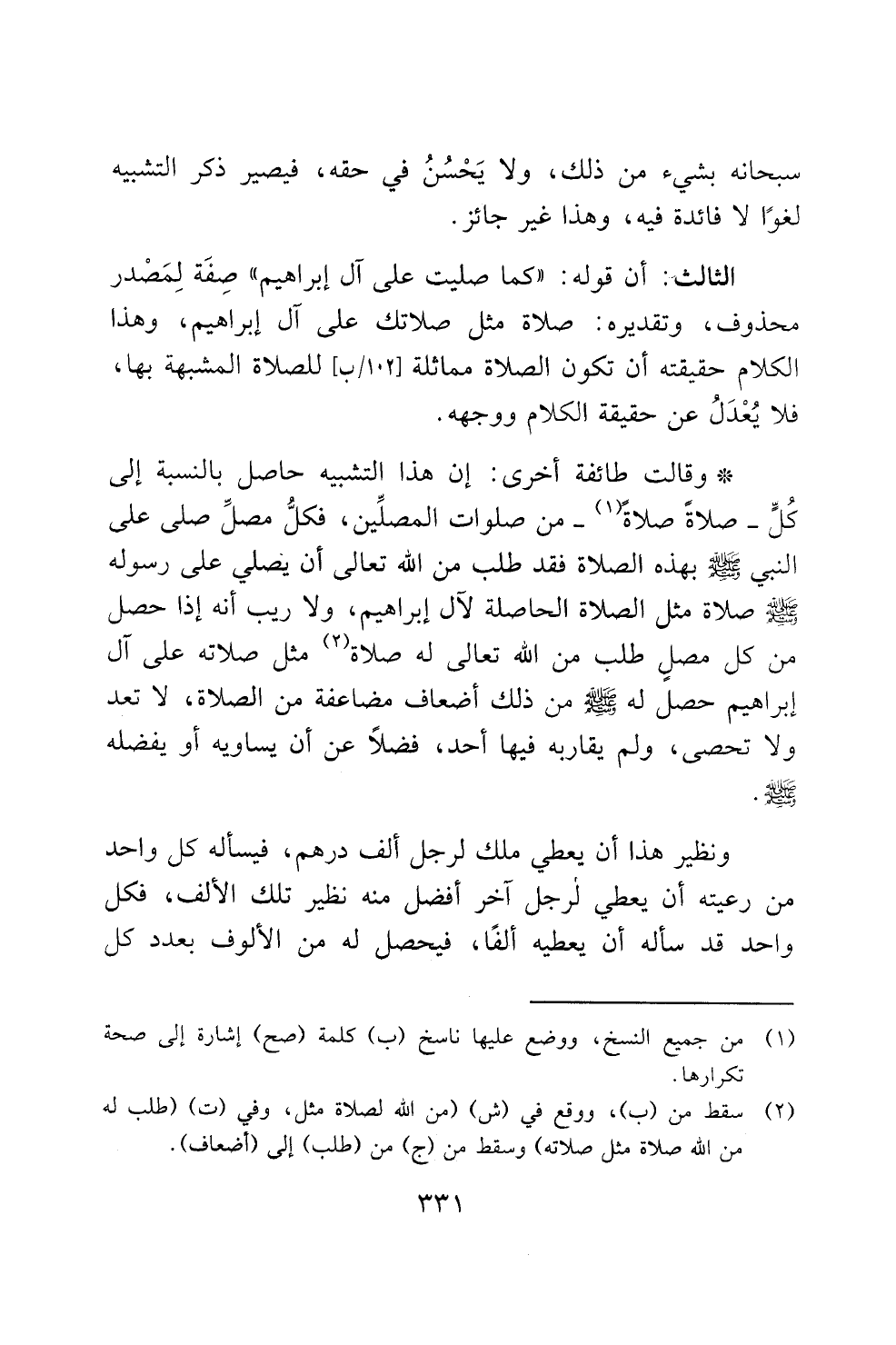 الثالث: ان قوله: "كما صليت على ال إبراهيم " صمة لمصدر