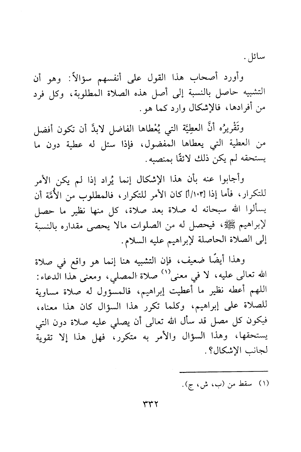 للصلاة على إبراهيم، وكلما تكرر هذا السؤال كان هذا معناه،