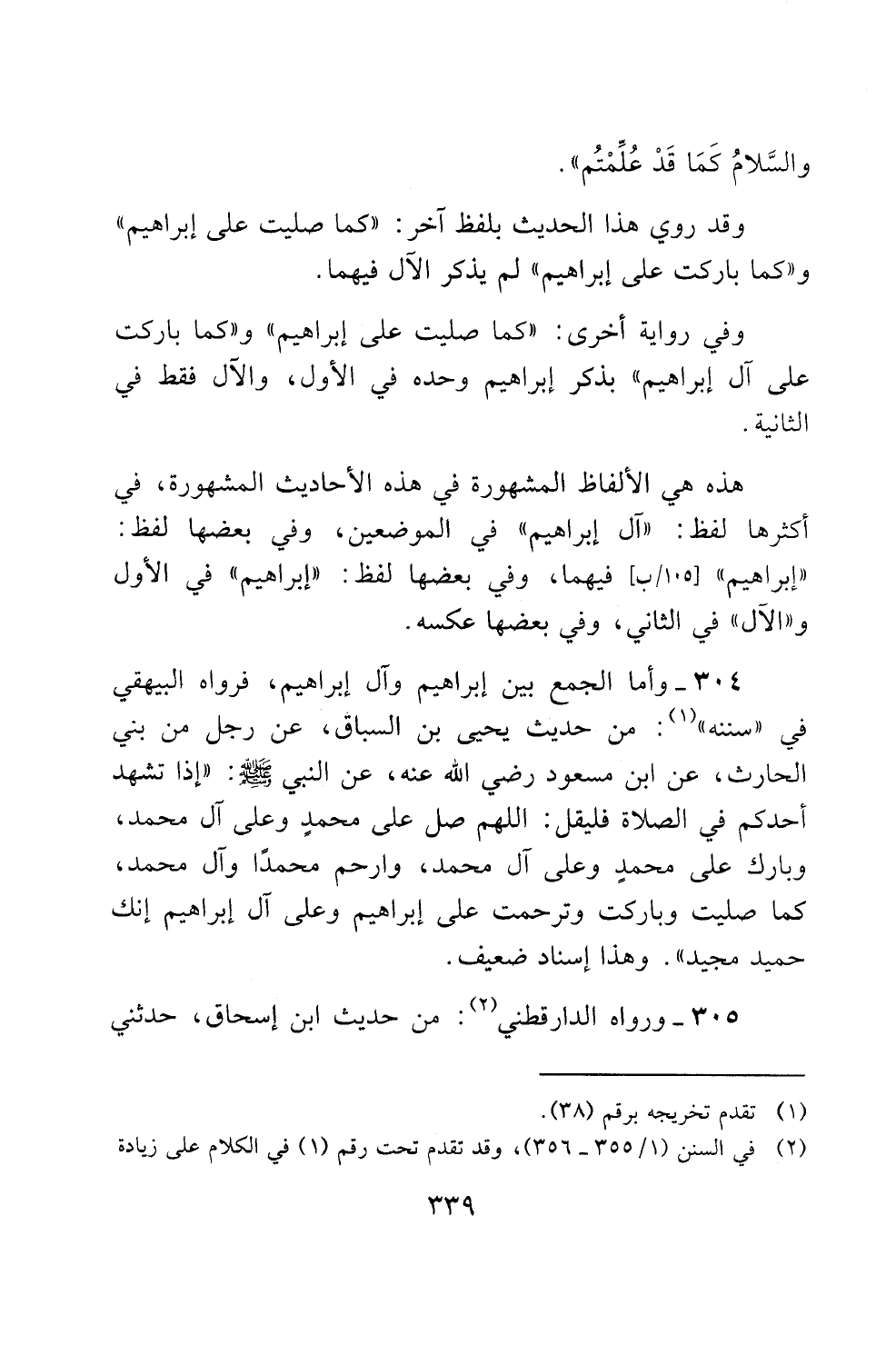 304 - وأما الجمع بين إبراهيم وال إبراهيم، فرواه البيهقي