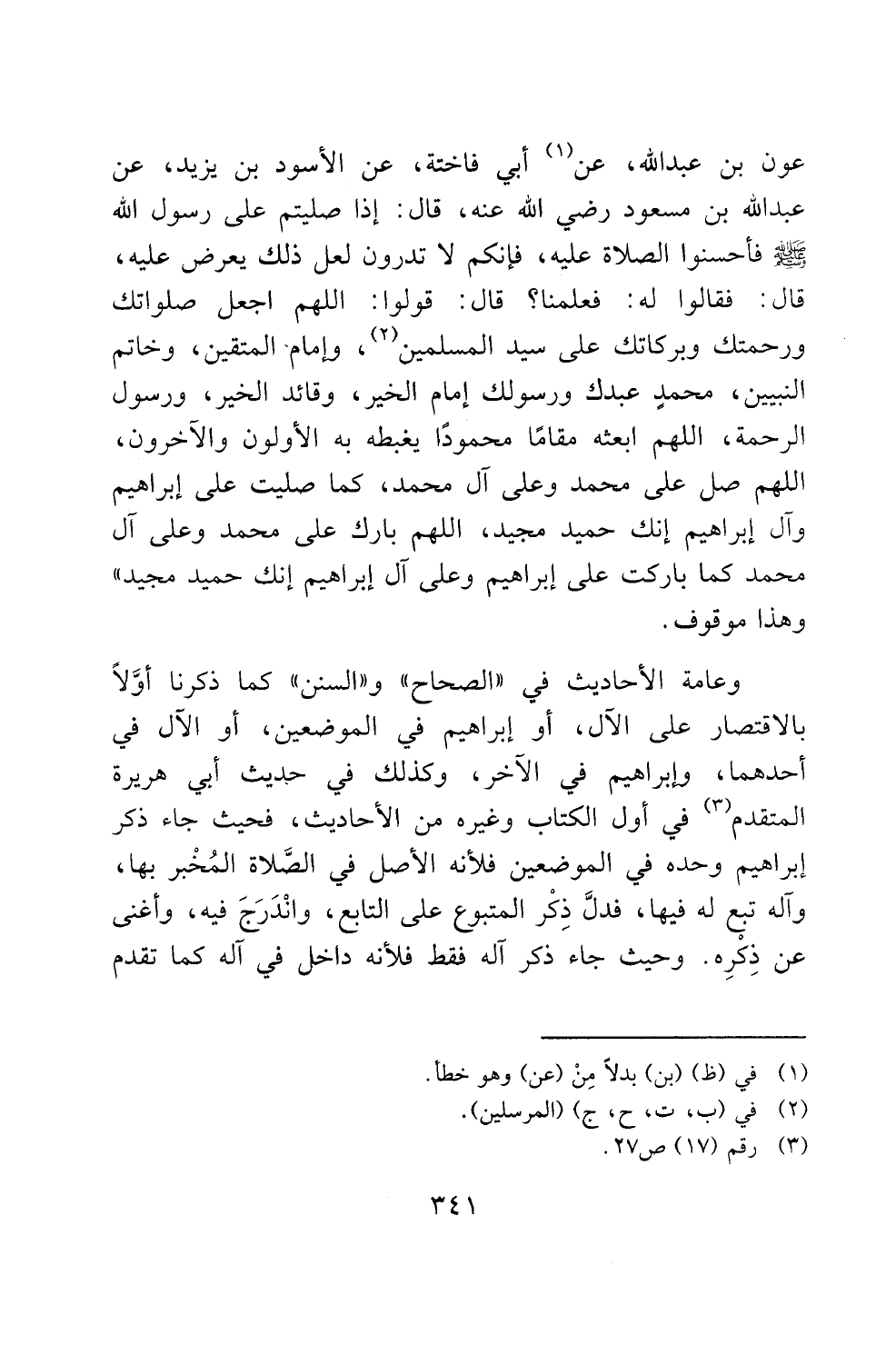 عبدالله بن مسعود رضي الله عنه، قال: إذا صليتم على رسول الله