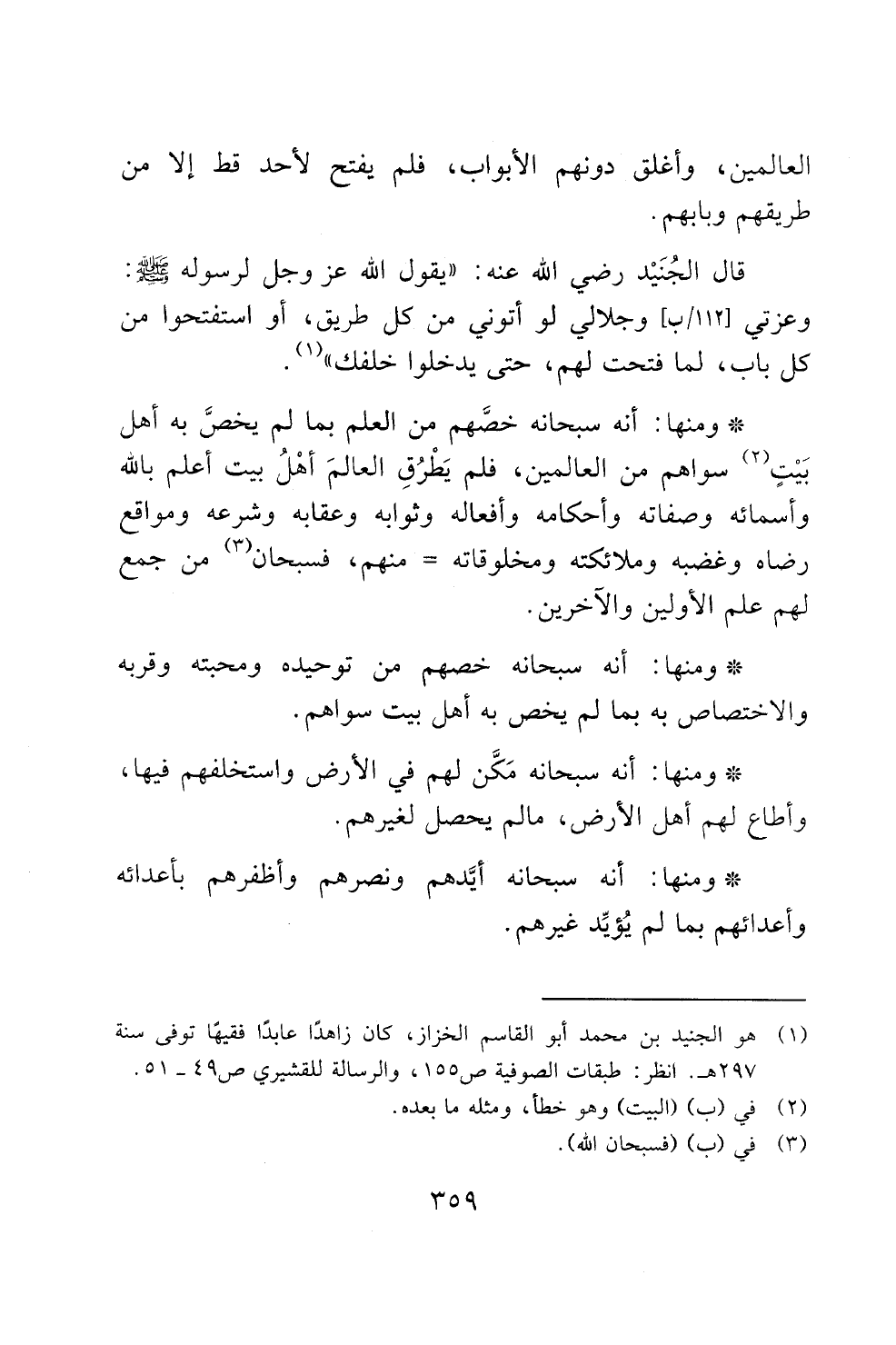 -ا: ومنها: أنه سبحانه خصهم من توحيده ومحبته وقربه