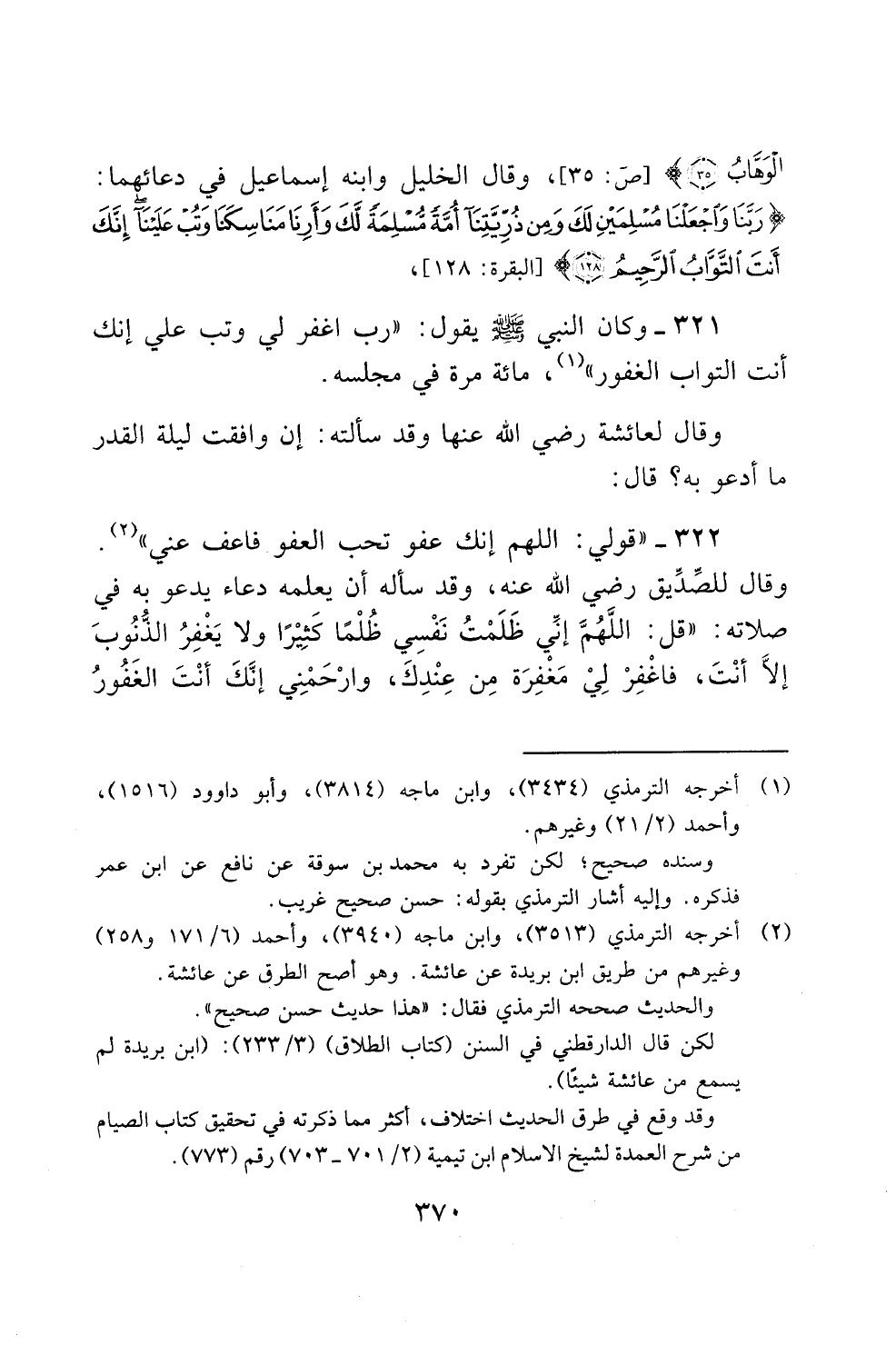 322 - "قولي: اللهم إنك عفو تحب العفو فاعف عني" (2).