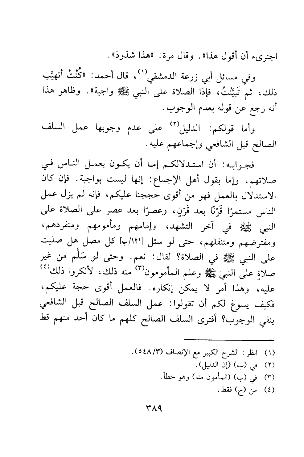 وأما قولكم: الدليل (2) على عدم وجوبها عمل السلف
