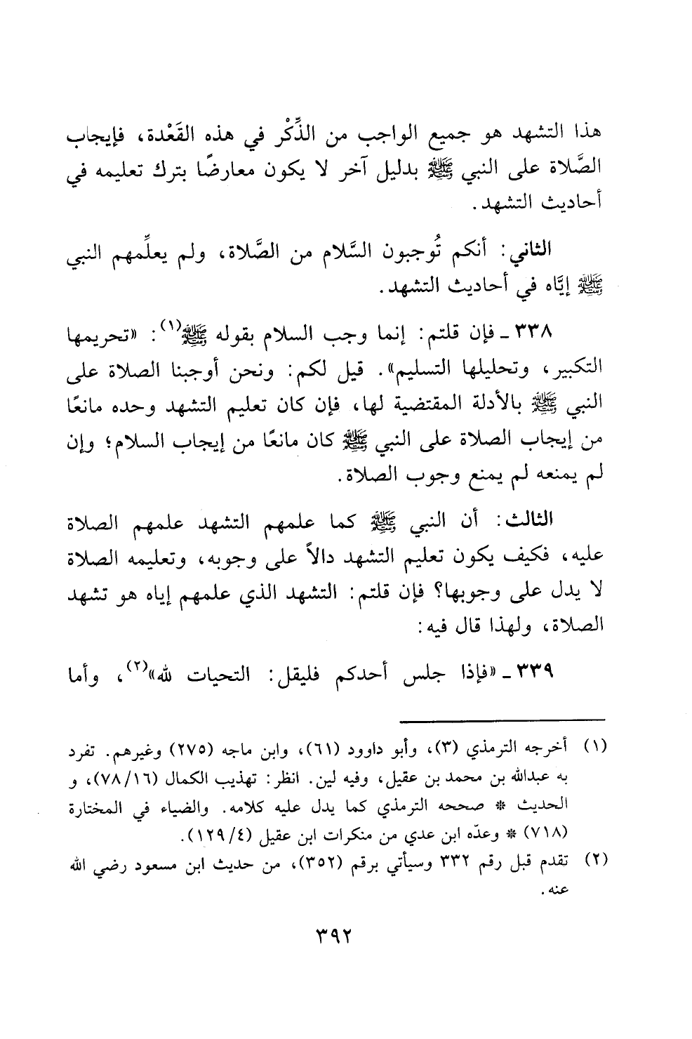 339 - "فاذا جلس أحدكم فليقل: التحيات لله" (2)، وأما