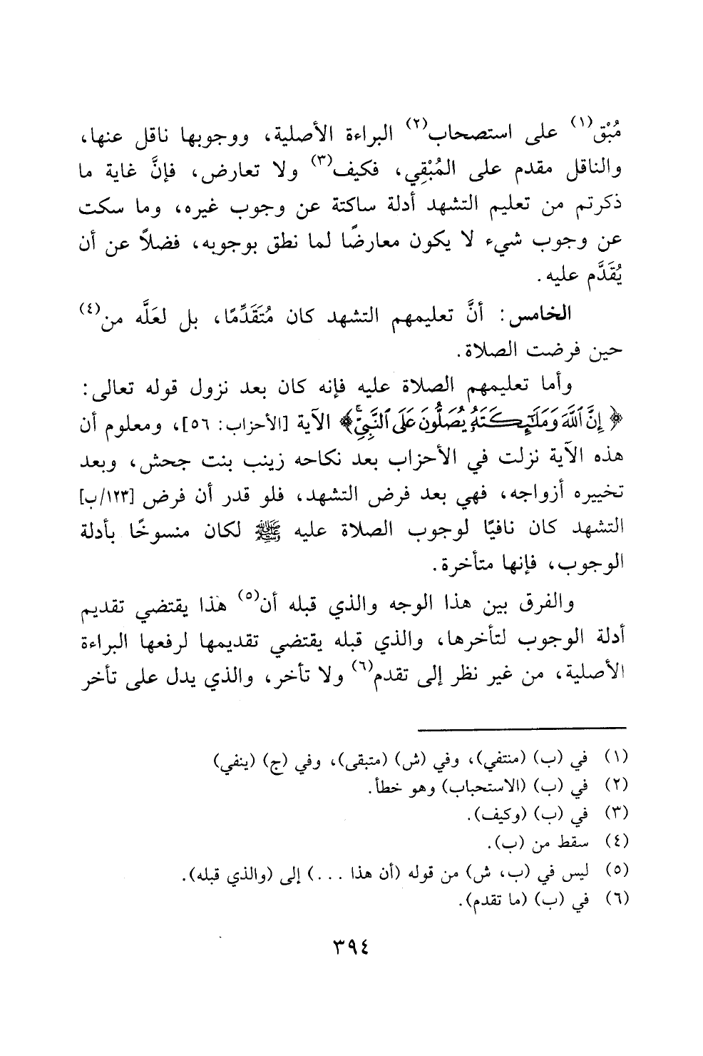 الأصلية، من غير نظر إلى تقدم (6) ولا تأخر، والذي يدل على تأخر