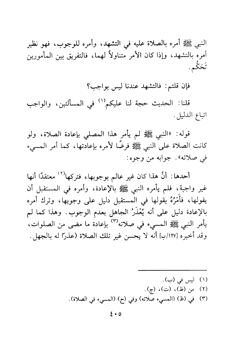 فإن قلتم: فالتشهد عندنا ليس بواجب؟