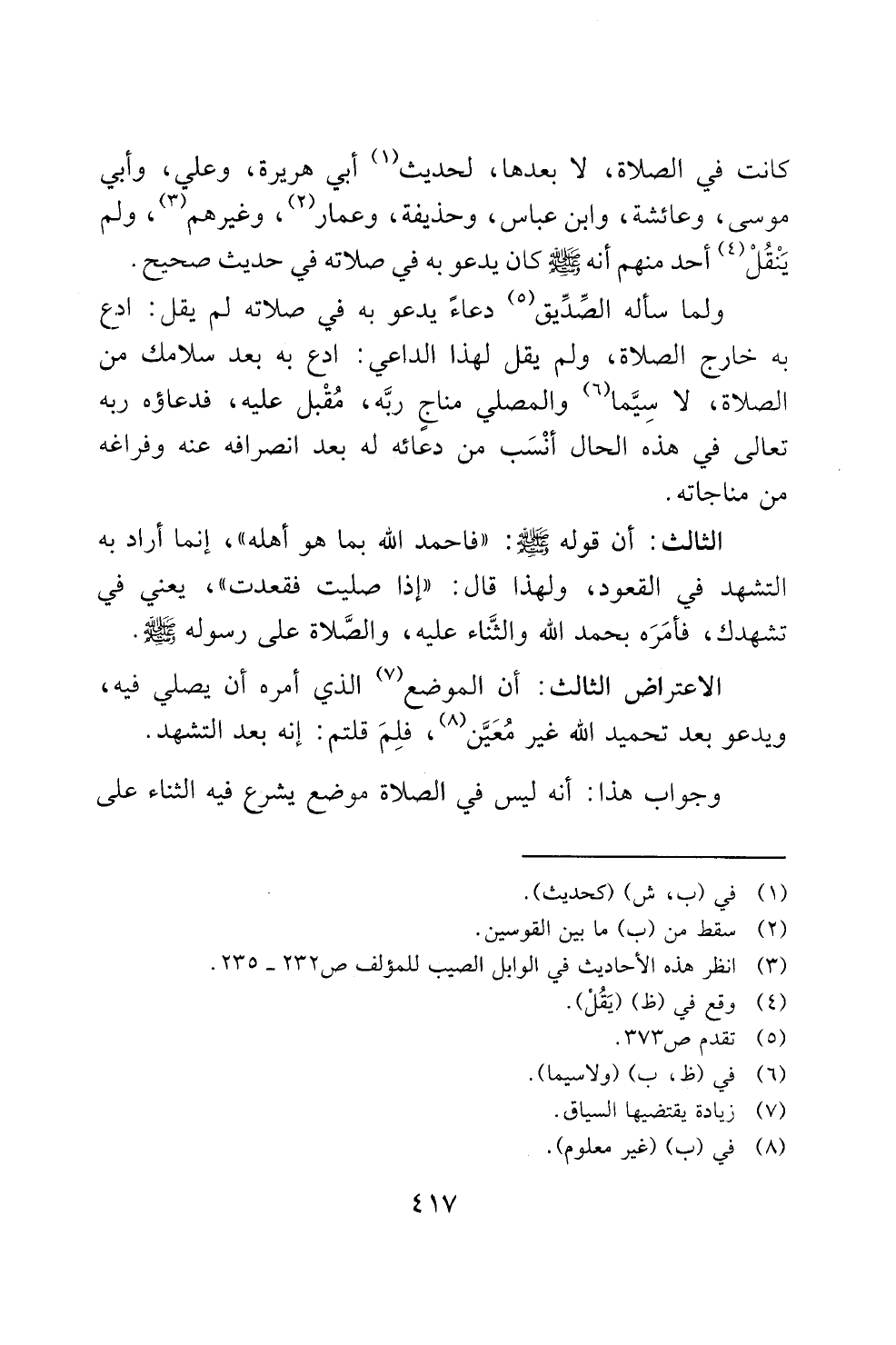 ويدعو بعد تحميد الله غير معين (8)، فلم قلتم: إنه بعد التشهد.