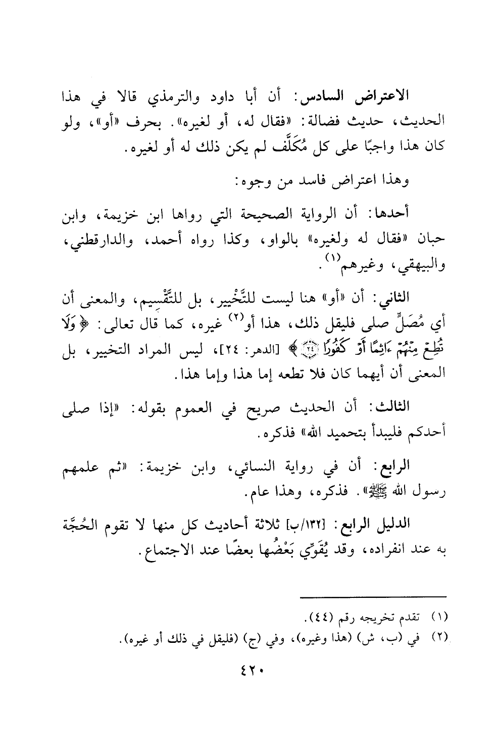 الدليل الرابع: [1122 ب] ثلاثة أحاديث كل منها لا تقوم الحجة