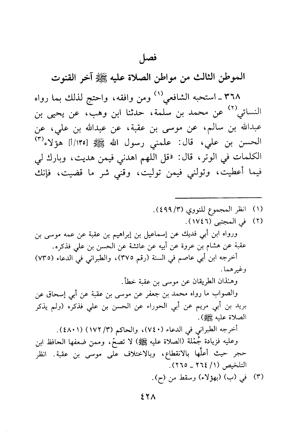 فصل الموطن الثالث من مواطن الصلاة عليه صلى الله عليه وسلم آخر القنوت
