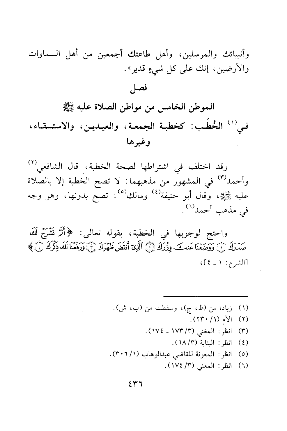 واحتج لوجوبها في الخطبة، بقوله تعالى: < ل! دنثرح لك