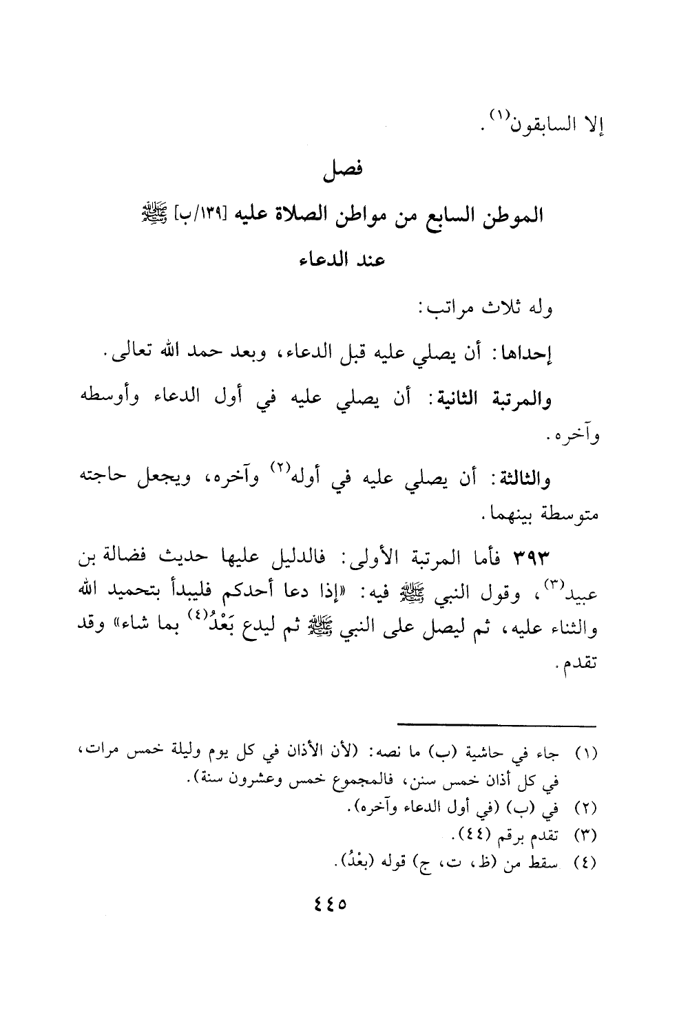 393 فأما المرتبة الاولى: فالدليل عليها حديث فضالة بن