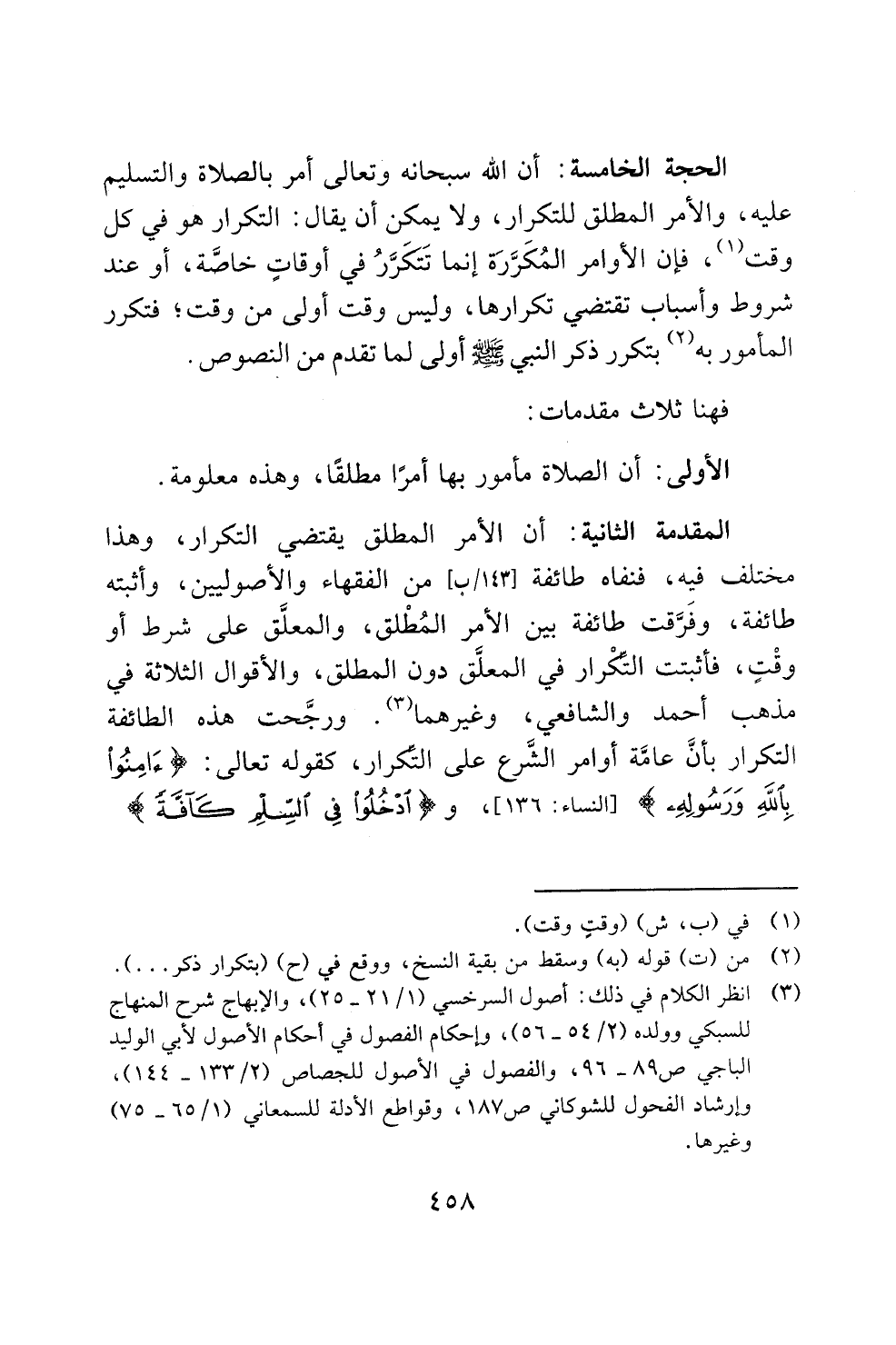 المقدمة الثانية: أن الأمر المطلق يقتضي التكرار، وهذا