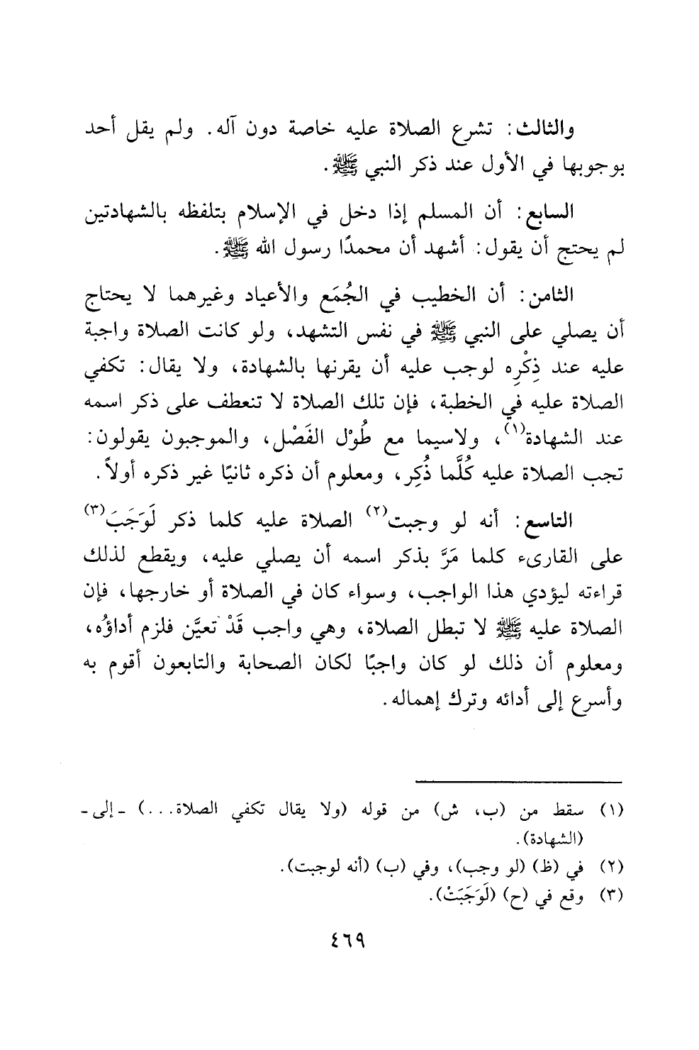 (1) سقط من (ب، ش) من قوله (ولا يقال تكفي الصلاة ... ) -إلى-