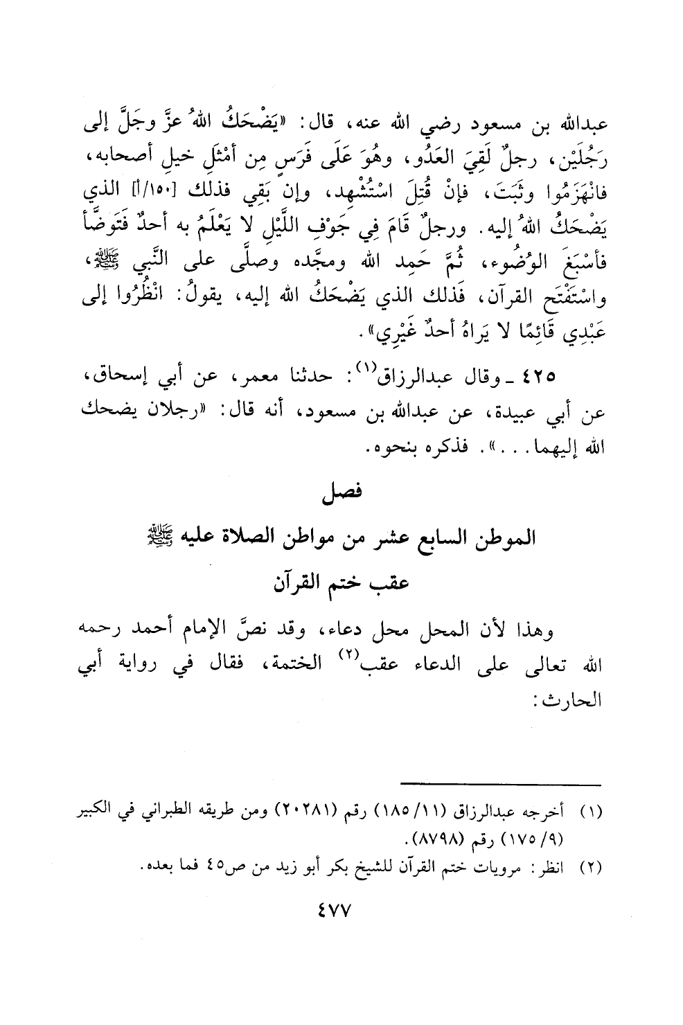 (2) انظر: مرويات ختم القرآن للشيخ بكر ابو زيد من ص 45 فما بعده.