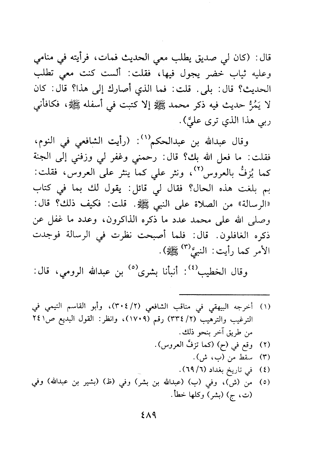 وقال عبدالله بن عبدالحكم (1): (رأيت الشافعي في النوم،