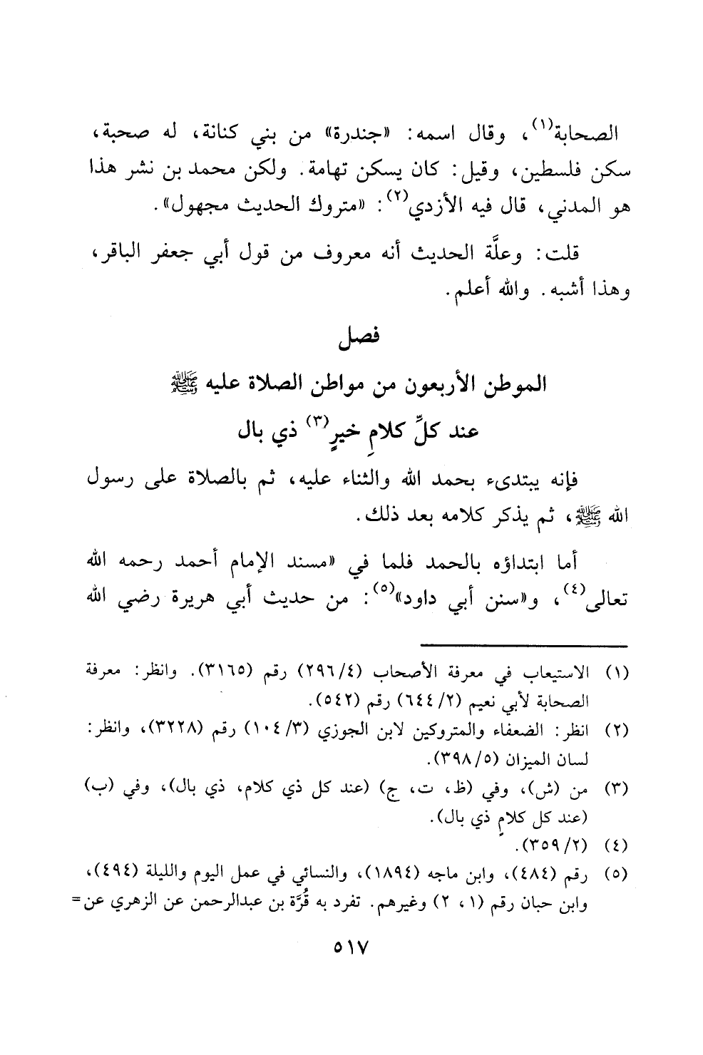 (عند كل كلام ذي بال).