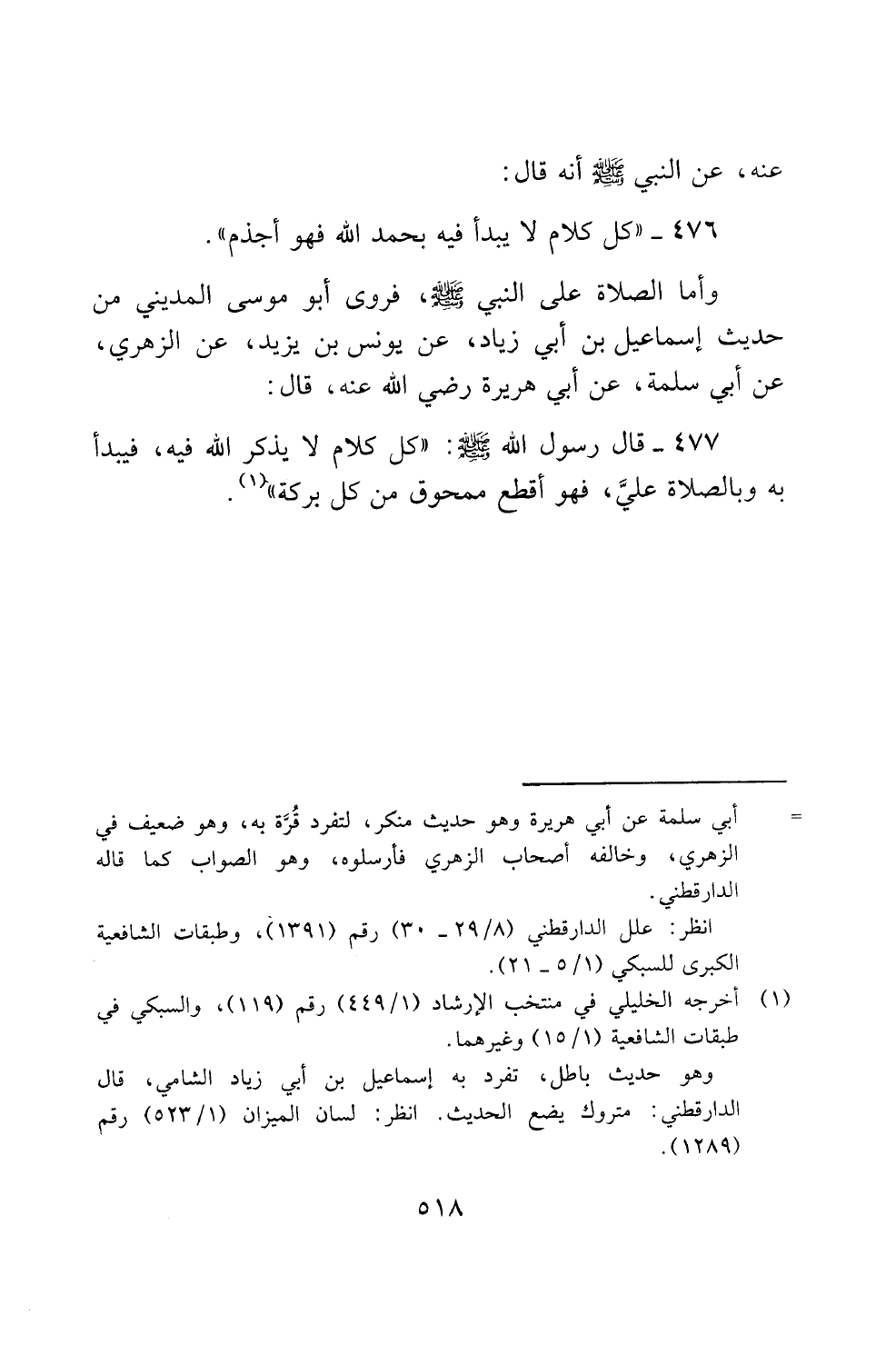 476 - "كل كلام لا يبدا فيه بحمد الله فهو اجذم".