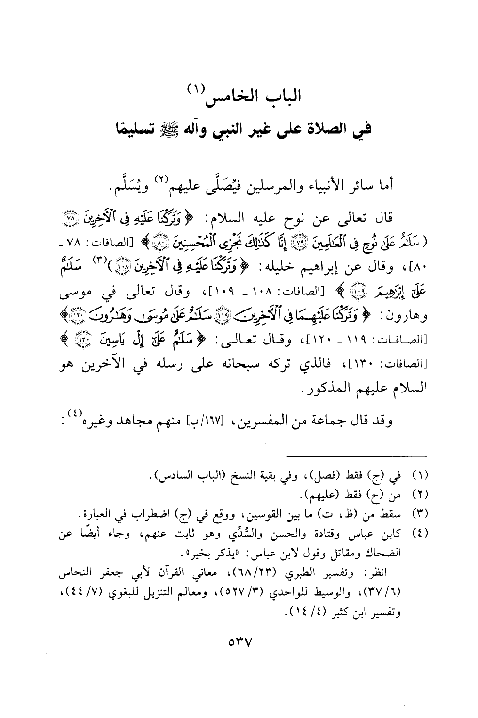 الباب الخامس (1) في الصلاة على غير النبي وآله صلى الله عليه وسلم تسليما