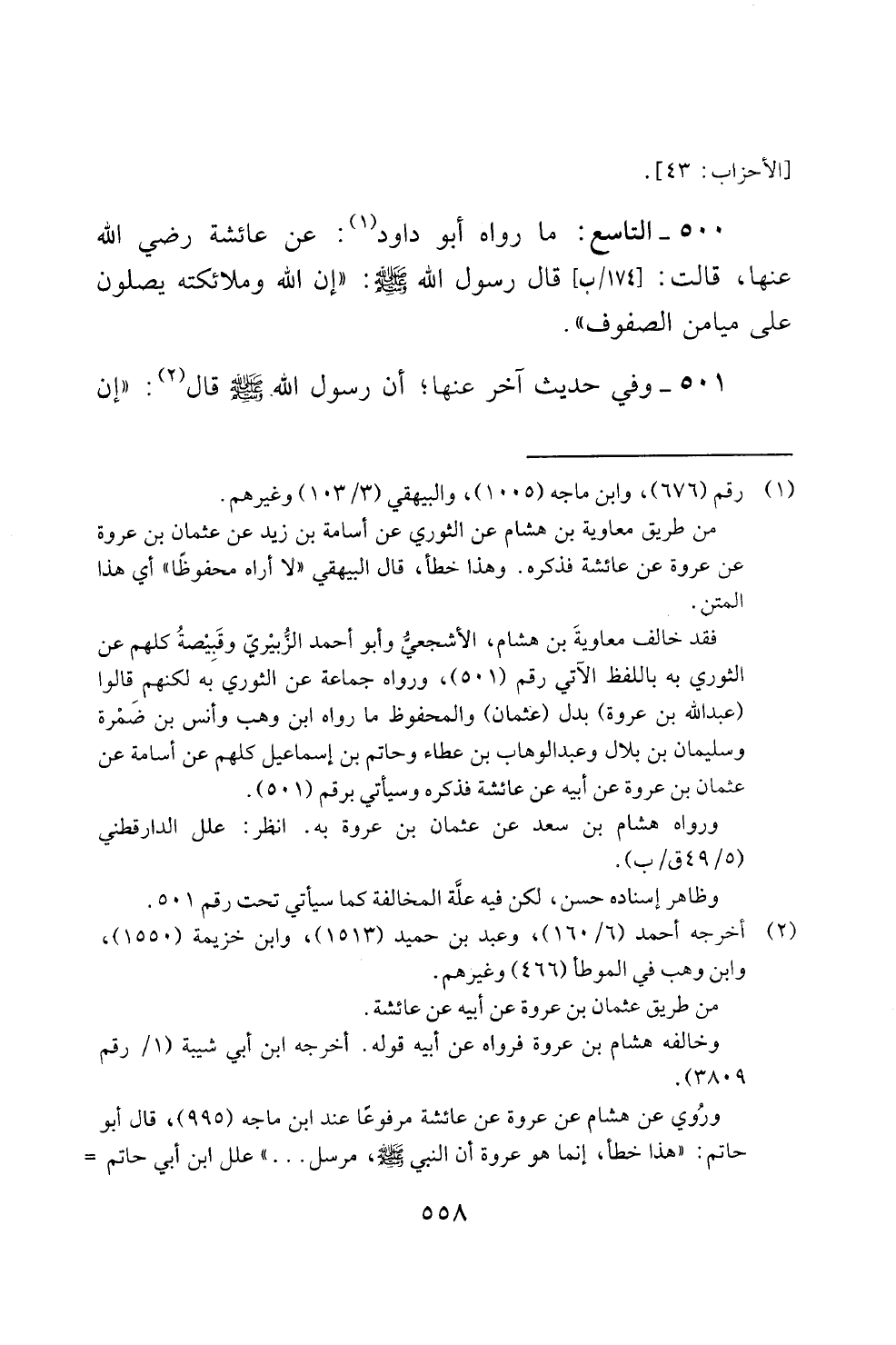 500 - التاستع: ما رواه أبو داود (1): عن عائشة رضي الله