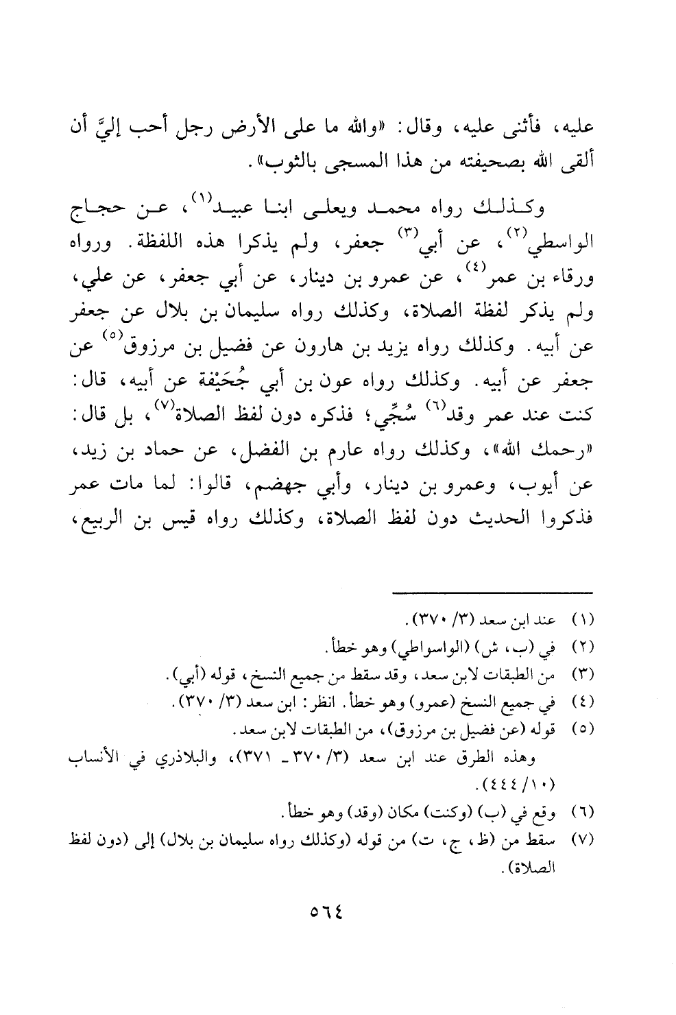 قوله (عن فضيل بن مرزوق)، من الطبقات لابن سعد.