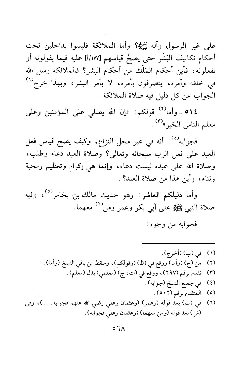 514 - وأما (2) قولكم: "إن الله يصلي على المؤمنين وعلى