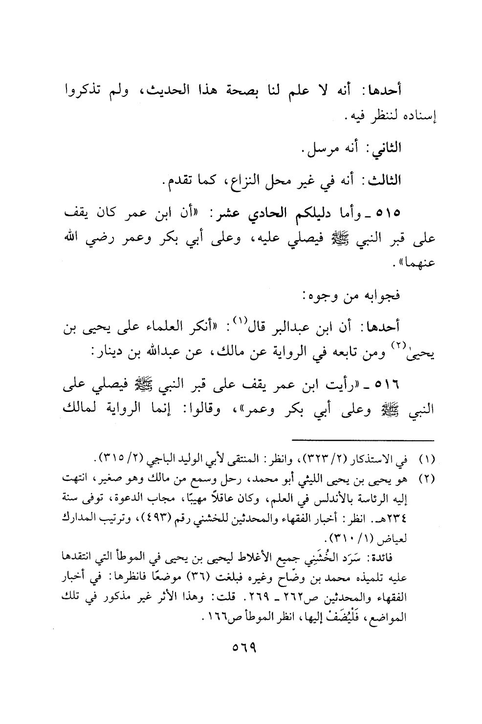 515 - وأما دليلكم الحادي عشر: "أن ابن عمر كان يقف