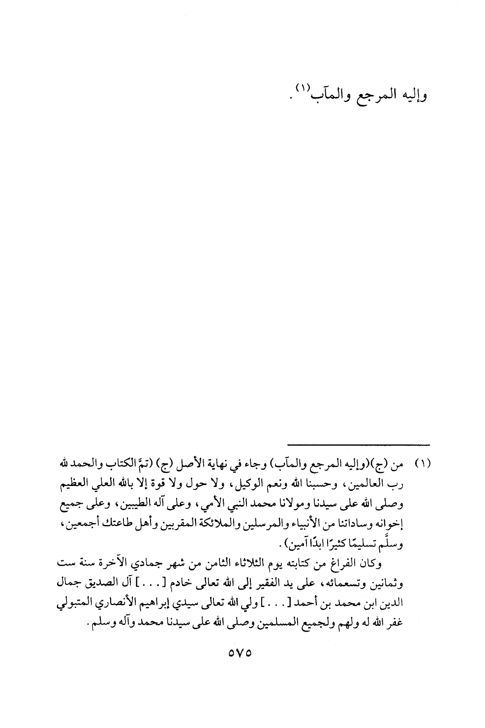 (1) من (ج) (وإليه المرجع والماب) وجاء في نهاية الاصل (ج) (تم الكتاب والحمد دئه
