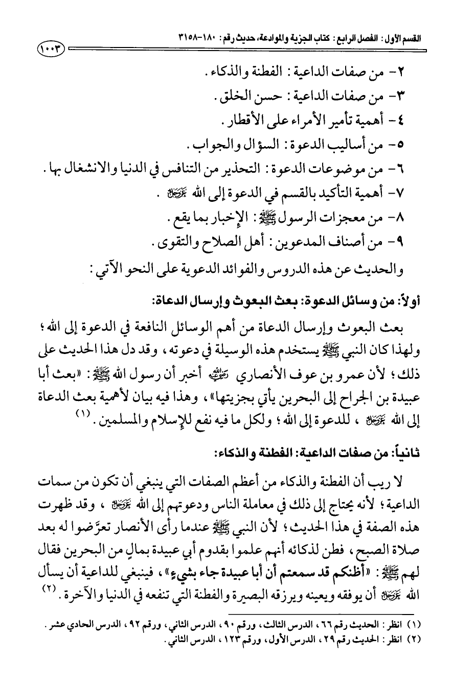 (¬1) انظر: الحديث رقم 66، الدرس الثالث، ورقم 90، الدرس الثاني، ورقم 92، الدرس الحادي عشر.