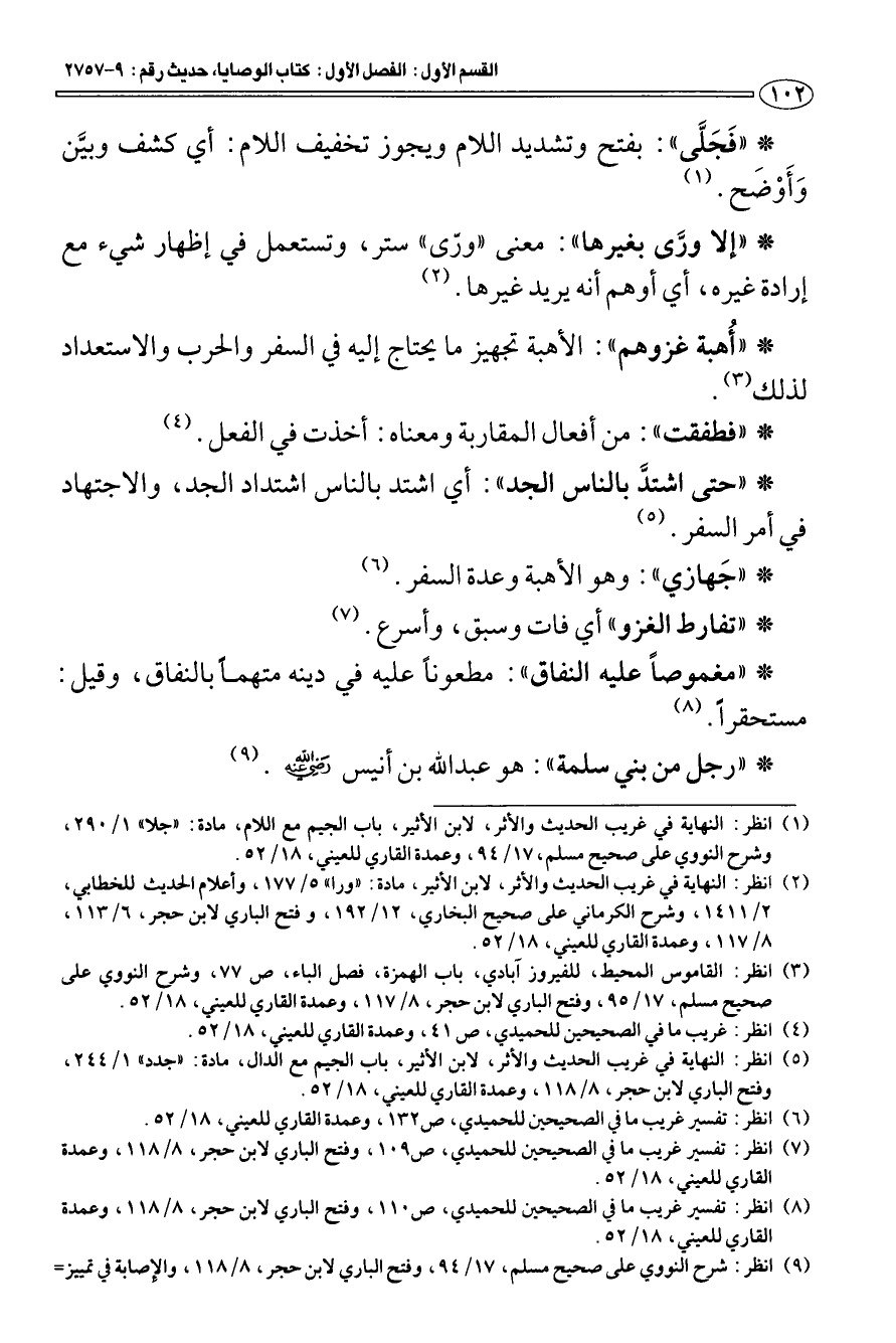 (¬5) انظر: النهاية في غريب الحديث والأثر، لابن الأثير، باب الجيم مع الدال، مادة: " جدد " 1/ 244، وفتح الباري لابن حجر، 8/ 118، وعمدة القاري للعيني، 18/ 52.