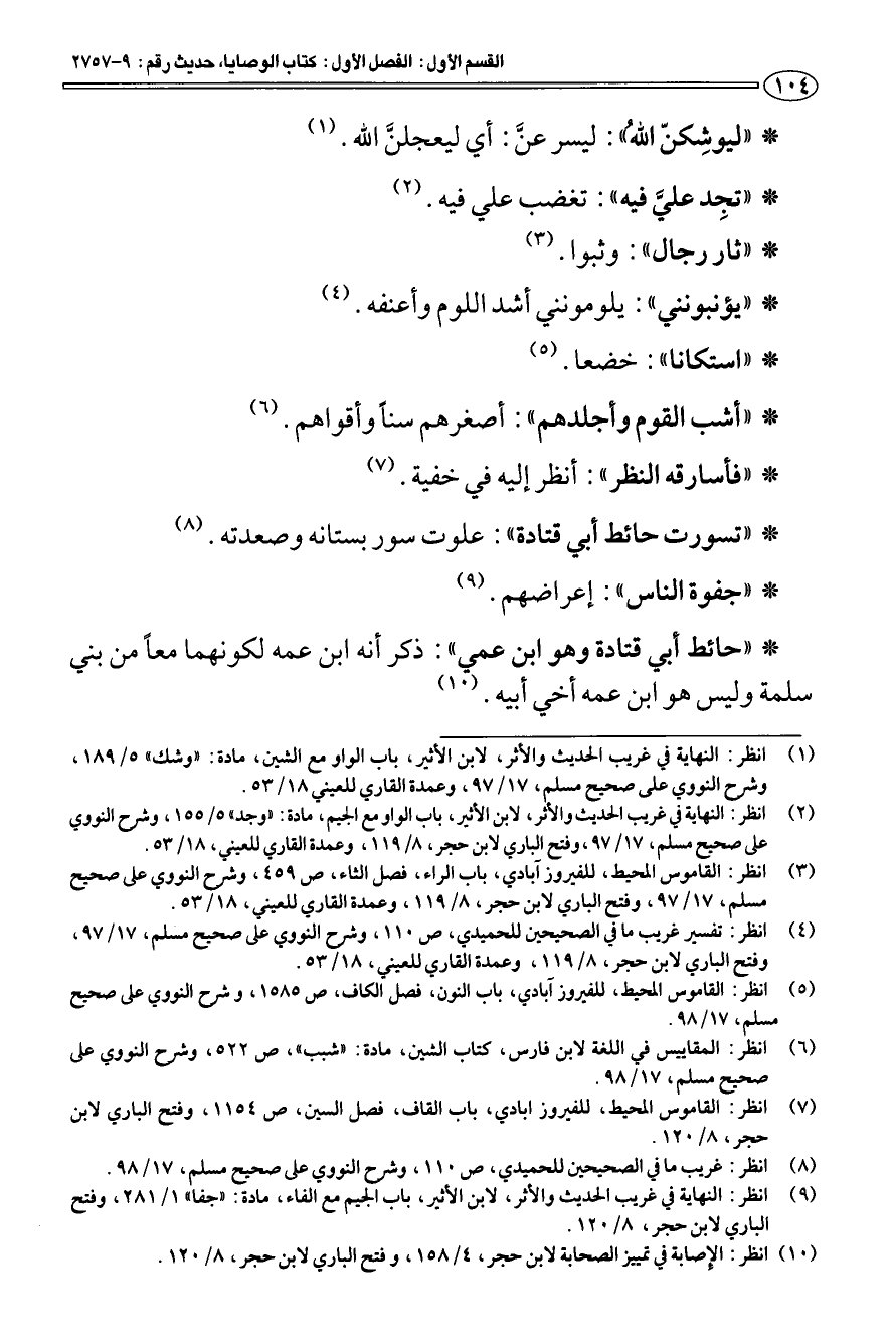 (¬8) انظر: غريب ما في الصحيحين للحميدي، ص 110، وشرح النووي على صحيح مسلم، 17/ 98.
