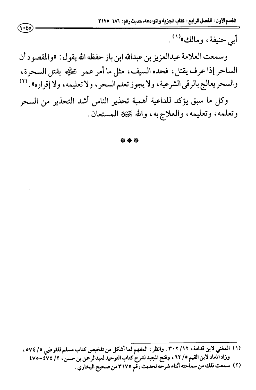 (¬1) المغني لابن قدامة، 12/ 302. وانظر: المفهم لما أشكل من تلخيص كتاب مسلم للقرطبي 5/ 574، وزاد المعاد لابن القيم 5/ 62، وفتح المجيد لشرح كتاب التوحيد لعبد الرحمن بن حسن، 2/ 474 - 475.