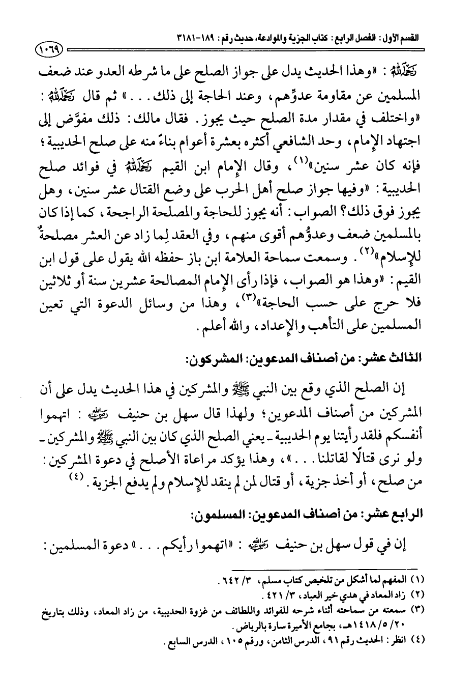 (¬3) سمعته من سماحته أثناء شرحه للفوائد واللطائف من غزوة الحديبية، من زاد المعاد، وذلك بتاريخ 20/ 5 / 1418 هـ، بجامع الأميرة سارة بالرياض.