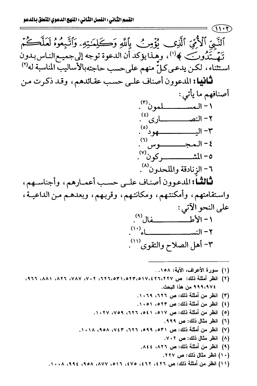 ثالثا: المدعوون أصناف على حسب أعمارهم، وأجناسهم، واستقامتهم، وأمكنتهم، ومكانتهم، وقربهم، وبعدهم من الداعية، على النحو الآتي: