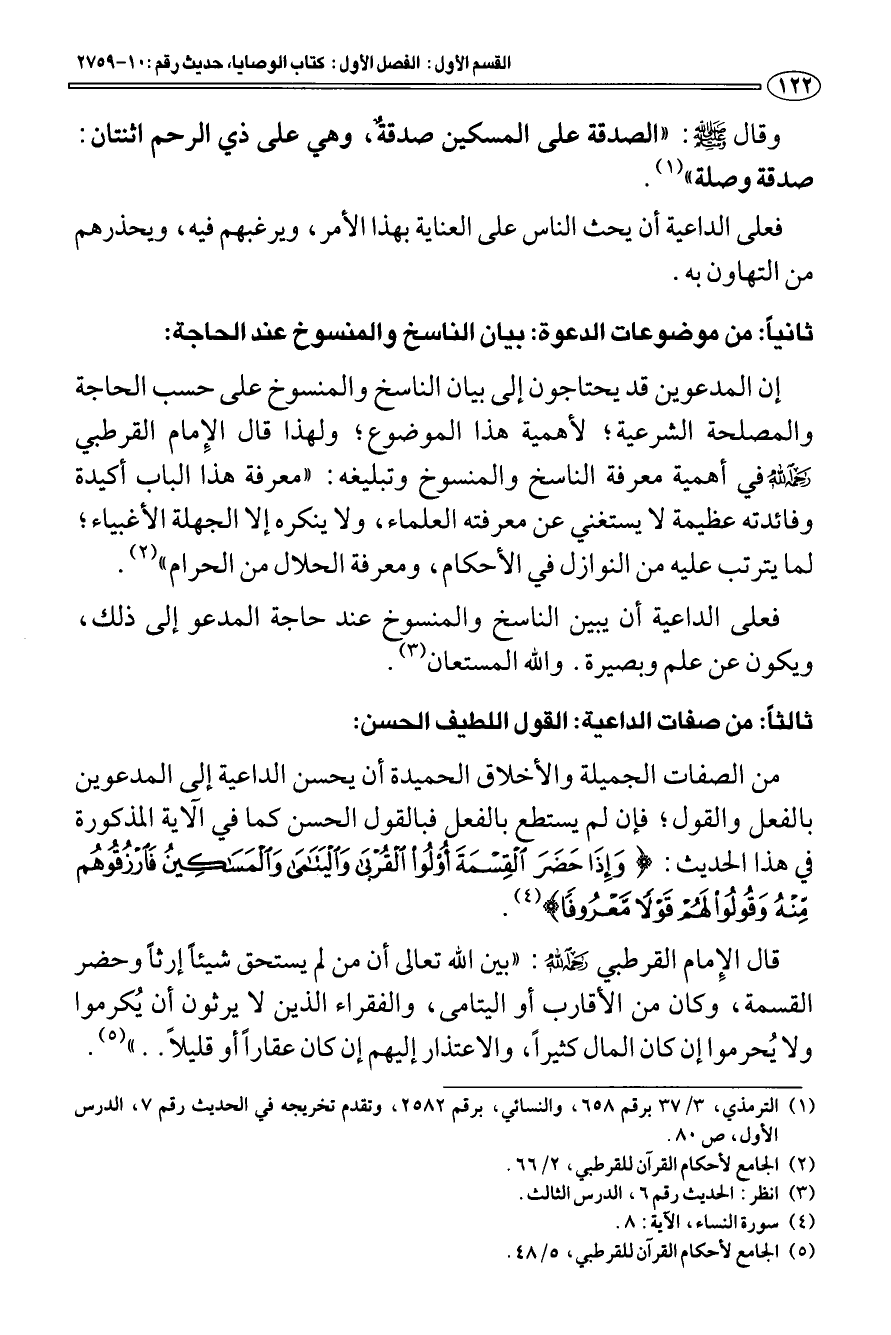 (¬1) الترمذي، 3/ 37 برقم 658، والنسائي، برقم 2582، وتقدم تخريجه في الحديث رقم 7، الدرس الأول، ص 80.