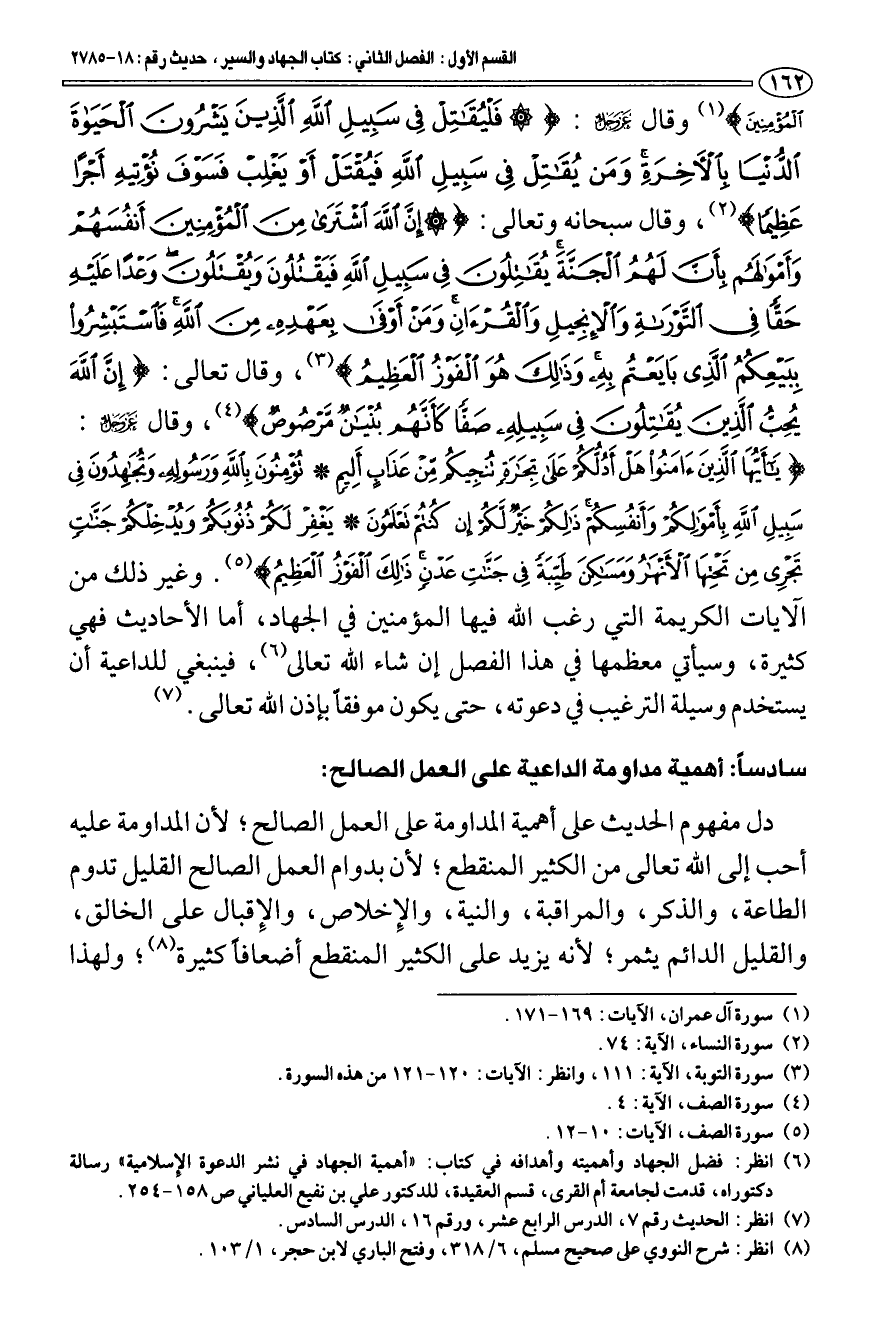 (¬5) انظر: فضل الجهاد وأهميته وأهدافه في كتاب: " أهمية الجهاد في نشر الدعوة الإِسلامية " رسالة دكتوراه، قدمت لجامعة أم القرى، قسم العقيدة، للدكتور علي بن نفيع العلياني ص 158 - 254.