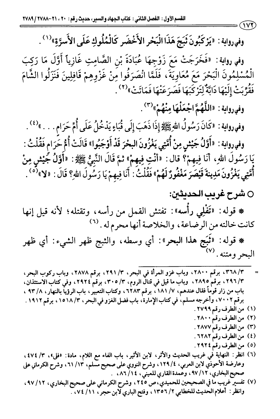 (¬7) تفسير غريب ما في الصحيحين للحميدي، ص 245، وشرح الكرماني على صحيح البخاري، 12/ 97، وانظر: أعلام الحديث للخطابي 2/ 1356، وفتح الباري لابن حجر، 11/ 74،.