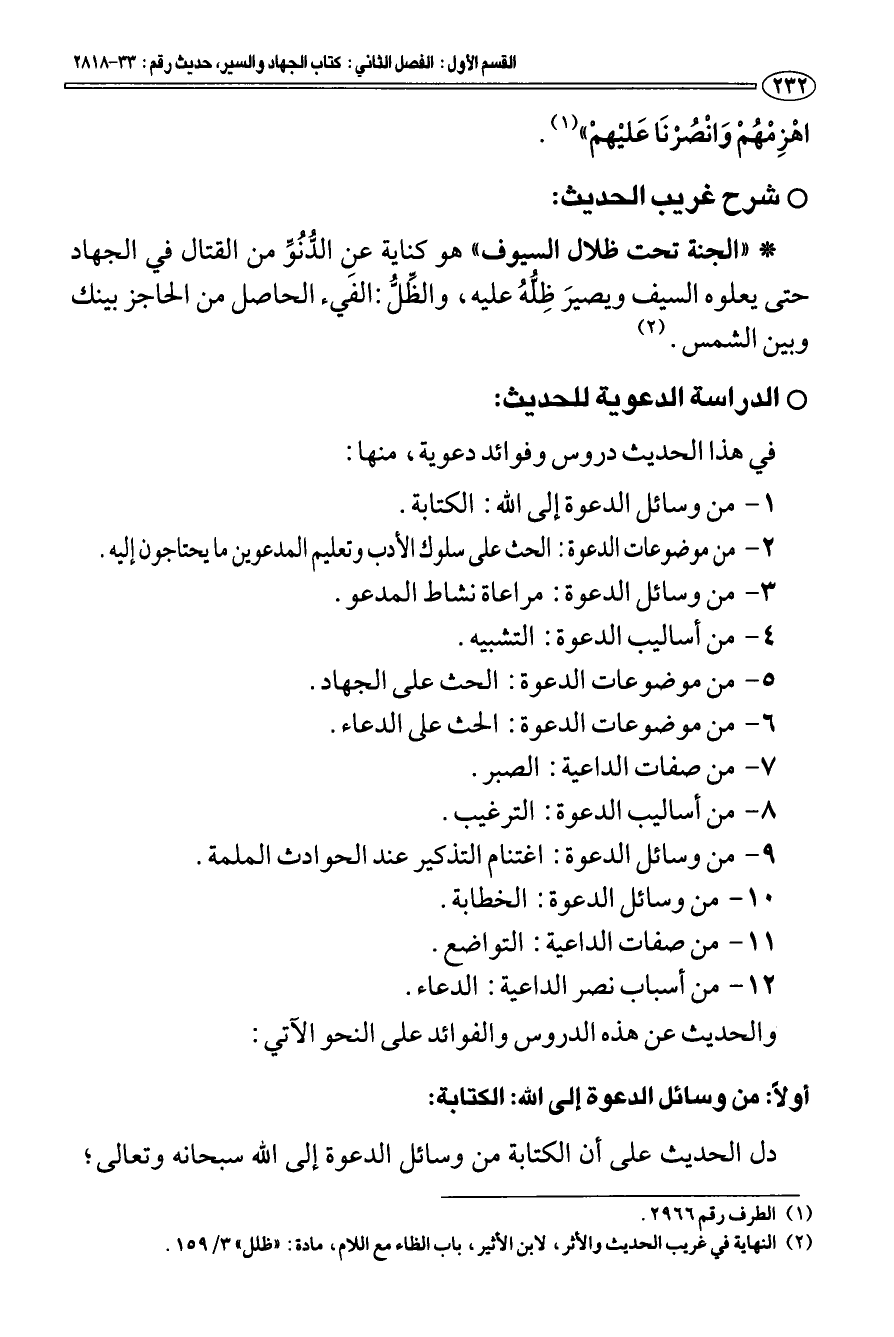 أولا: من وسائل الدعوة إلى الله: الكتابة: دل الحديث على أن الكتابة من وسائل الدعوة إلى الله سبحانه وتعالى؛