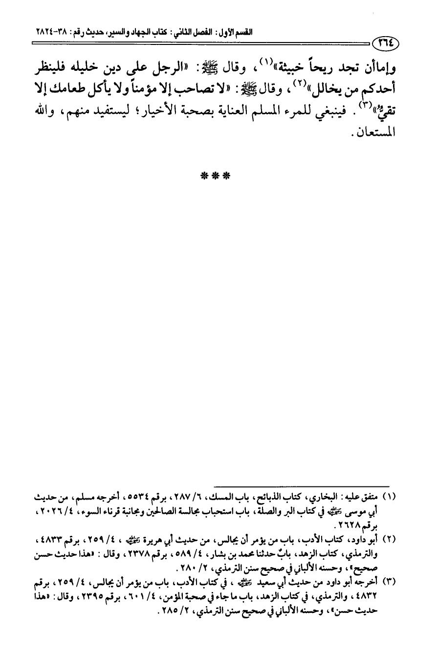 (¬2) أبو داود، كتاب الأدب، باب من يؤمر أن يجالس، من حديث أبي هريرة رضي الله عنه، 4/ 259، برقم 4833، والترمذي، كتاب الزهد، باب حدثنا محمد بن بشار، 4/ 589، برقم 2378، وقال: (هذا حديث حسن صحيح)، وحسنه الألباني في صحيح سنن الترمذي، 2/ 280.