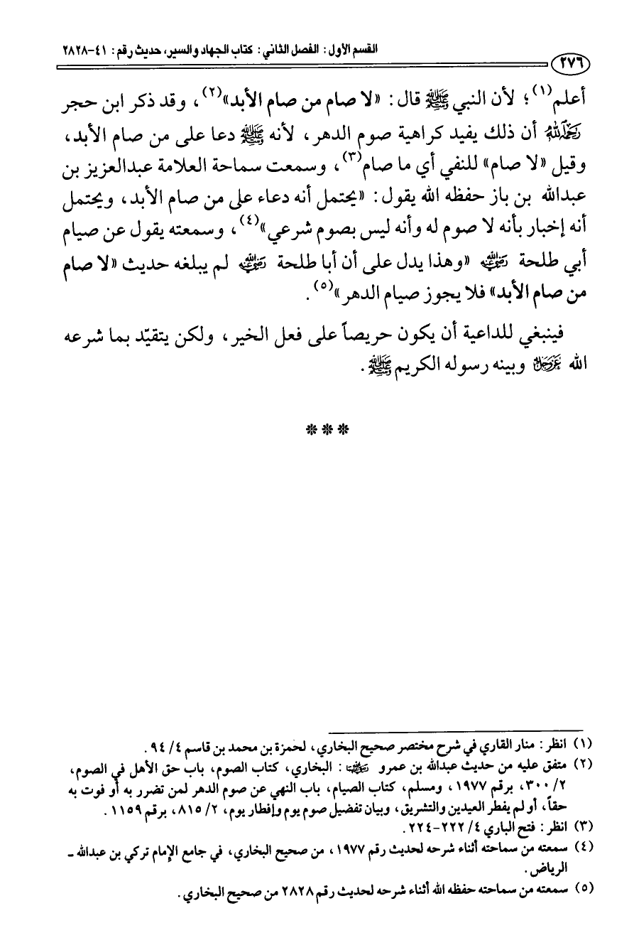 (¬5) سمعته من سماحته حفظه الله أثناء شرحه لحديث رقم 2828 من صحيح البخاري.
