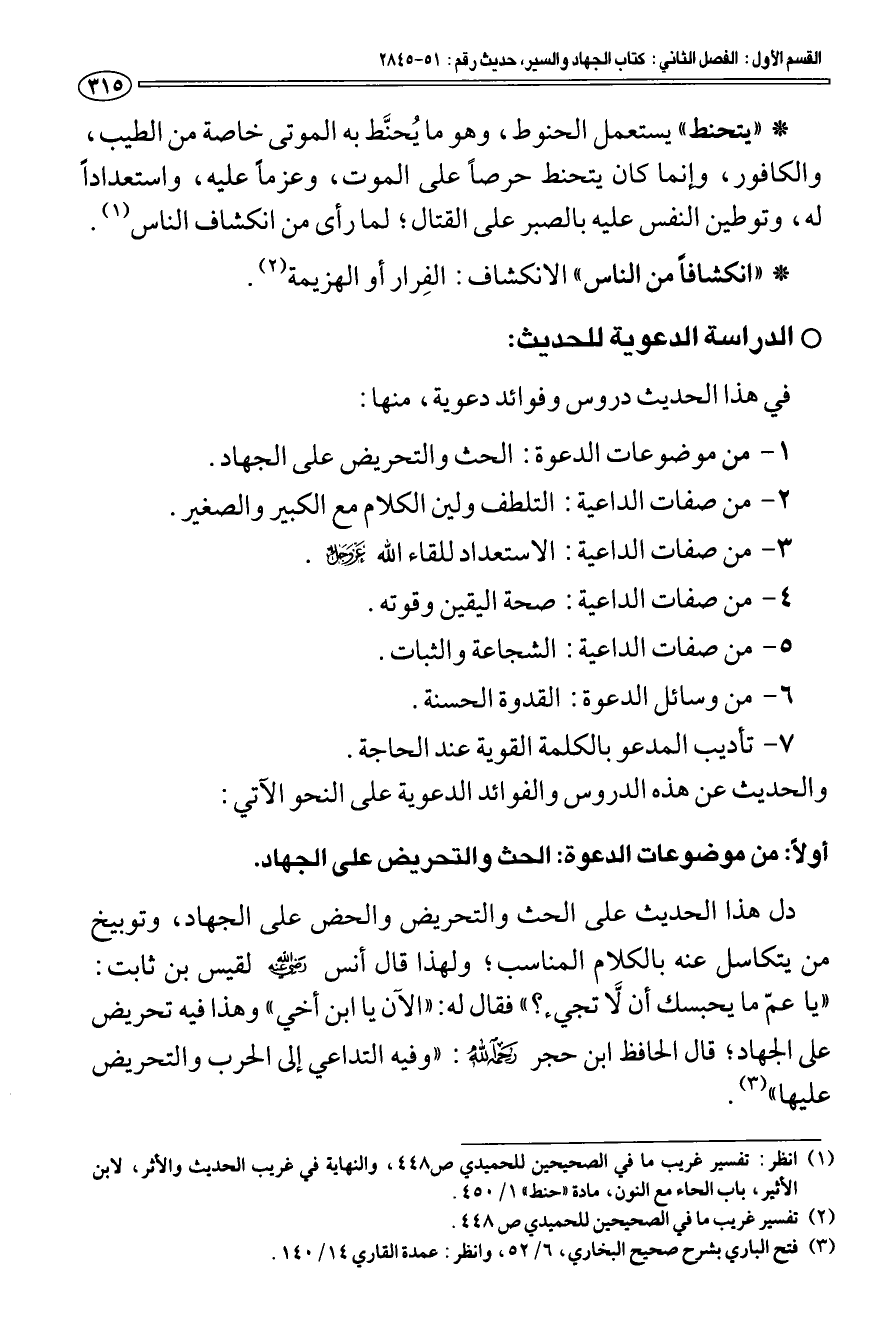 (¬1) انظر: تفسير غريب ما في الصحيحين للحميدي ص 448، والنهاية في غريب الحديث والأثر، لابن الأثير، باب الحاء مع النون، مادة " حنط " 1/ 450.