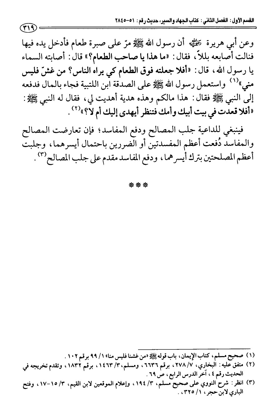 (¬1) صحيح مسلم، كتاب الإِيمان، باب قوله صلى الله عليه وسلم " من غشنا فليس منا " 1/ 99 برقم 102.
